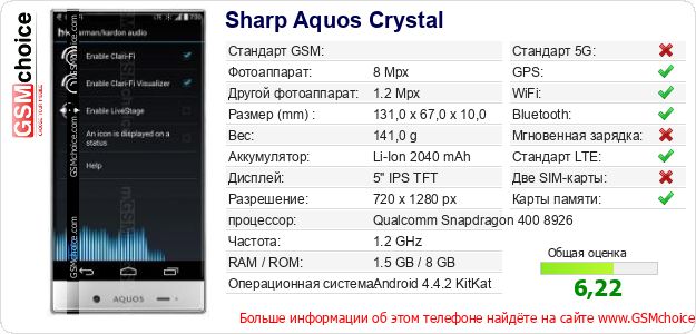 Данные о телефоне Sharp Aquos Crystal на Вашем сайте