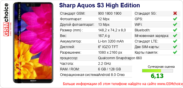 Данные о телефоне Sharp Aquos S3 High Edition на Вашем сайте