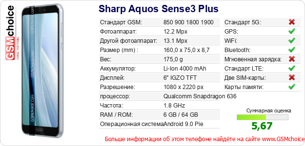 Данные о телефоне Sharp Aquos Sense3 Plus на Вашем сайте