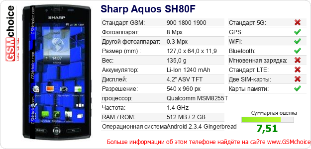 Данные о телефоне Sharp Aquos SH80F на Вашем сайте