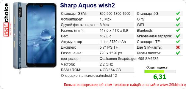 Данные о телефоне Sharp Aquos wish2 на Вашем сайте