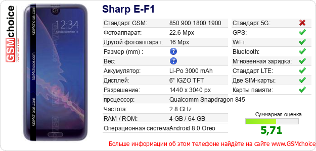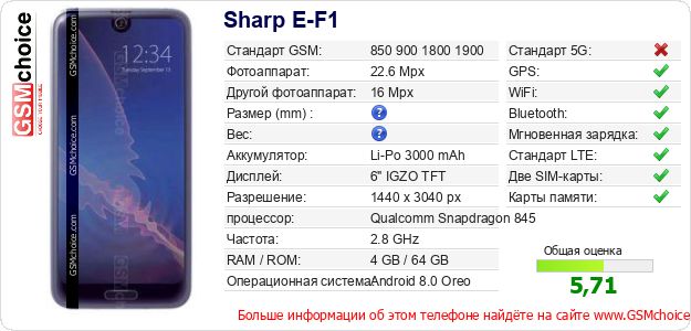 Данные о телефоне Sharp E-F1 на Вашем сайте