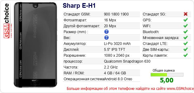 Данные о телефоне Sharp E-H1 на Вашем сайте