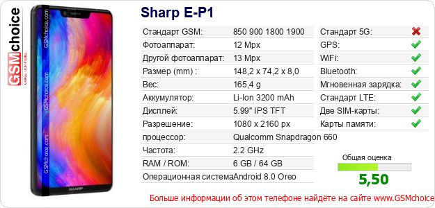 Данные о телефоне Sharp E-P1 на Вашем сайте