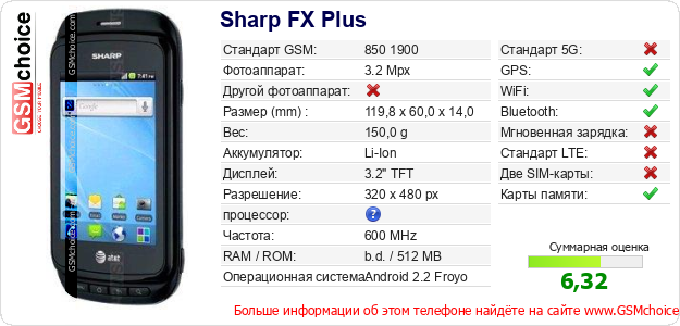 Данные о телефоне Sharp FX Plus на Вашем сайте