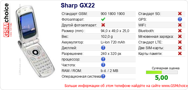 Данные о телефоне Sharp GX22 на Вашем сайте