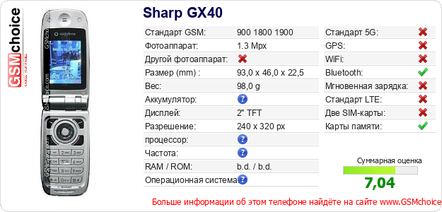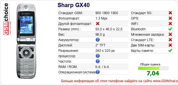 Данные о телефоне Sharp GX40 на Вашем сайте