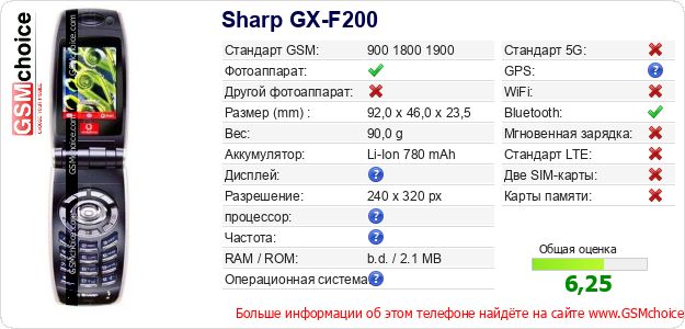 Данные о телефоне Sharp GX-F200 на Вашем сайте