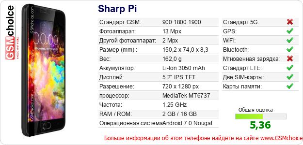Данные о телефоне Sharp Pi на Вашем сайте