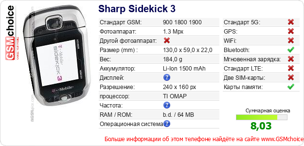 Данные о телефоне Sharp Sidekick 3 на Вашем сайте