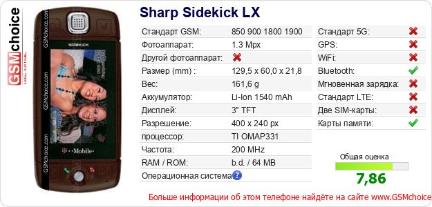 Данные о телефоне Sharp Sidekick LX на Вашем сайте