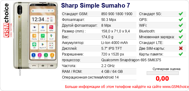 Данные о телефоне Sharp Simple Sumaho 7 на Вашем сайте