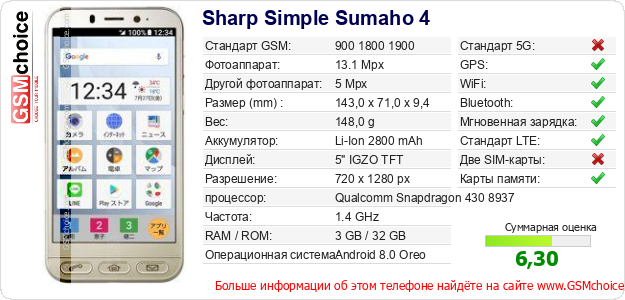 Данные о телефоне Sharp Simple Sumaho 4 на Вашем сайте