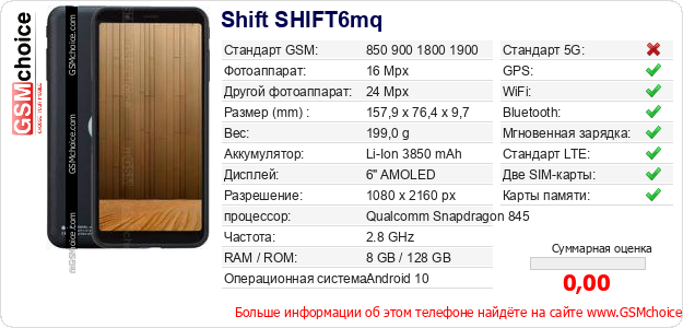 Данные о телефоне Shift SHIFT6mq на Вашем сайте