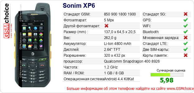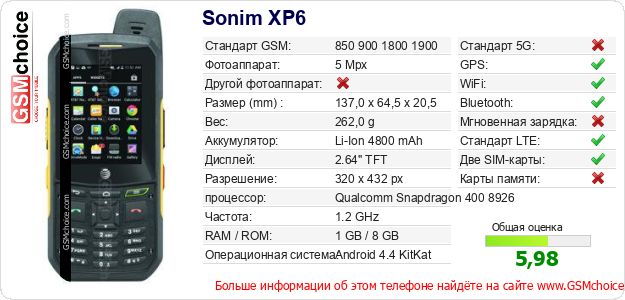 Данные о телефоне Sonim XP6 на Вашем сайте