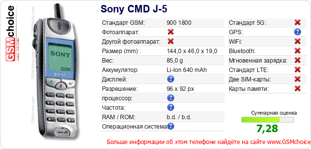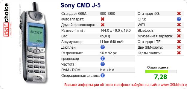 Данные о телефоне Sony CMD J-5 на Вашем сайте