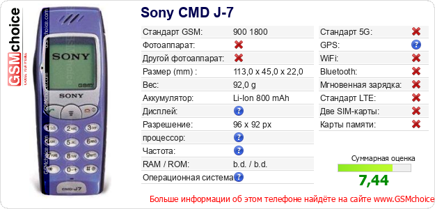 Данные о телефоне Sony CMD J-7 на Вашем сайте