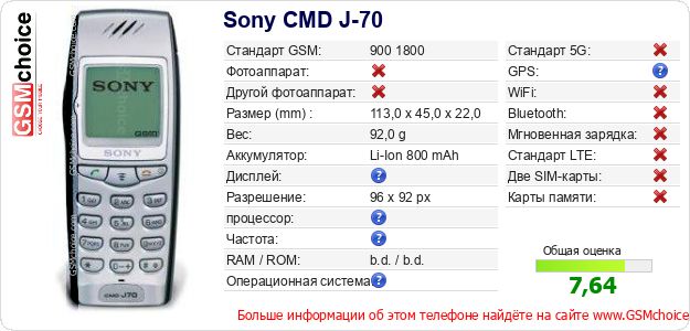 Данные о телефоне Sony CMD J-70 на Вашем сайте