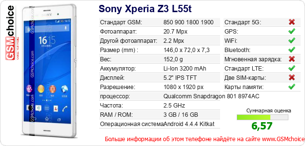 Данные о телефоне Sony Xperia Z3 L55t на Вашем сайте