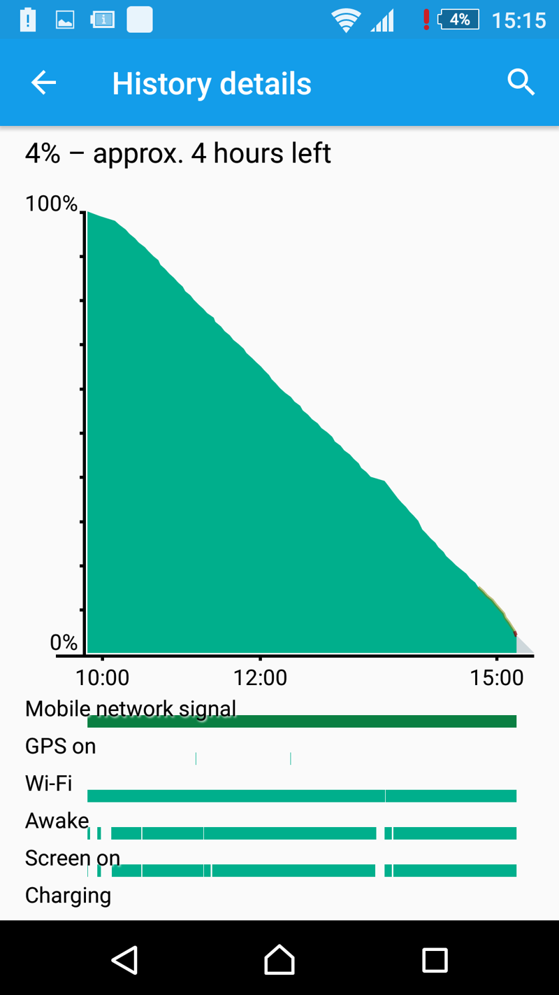 Sony обещает, что Xperia Z5 выдержит даже 2 суток на одном заряде — это конечно возможно, но в более экономном режиме в активной технологией STAMINA. 1-1,5 более реальное время для юзеров активнее использующих смартфон. На протяжении 5 часов смартфон может функционировать с включенным экраном (видео на YouTube, включенный Wi-Fi, 100% яркости экрана).