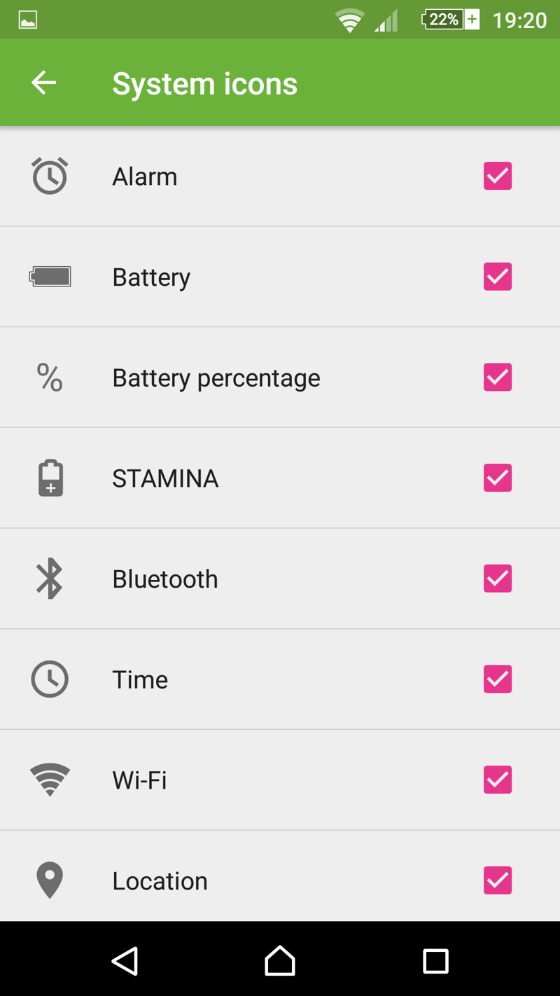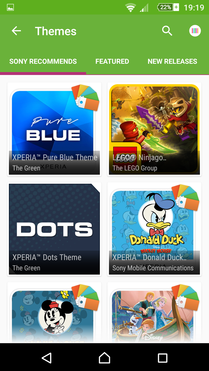 Персонализация касается перечня цветовых тем от Xperia, однако возможно загрузить и другие из Google Play. Возможно изменить обои (статические иди анимационные), а также добавить новые рабочие столы (максимум 7) и размещать на них иконы и виджеты. Возможно изменить часы на экране блокады, поменять размер шрифта и выбрать системные иконы, которые будут демонстрироваться на полоске состояния.