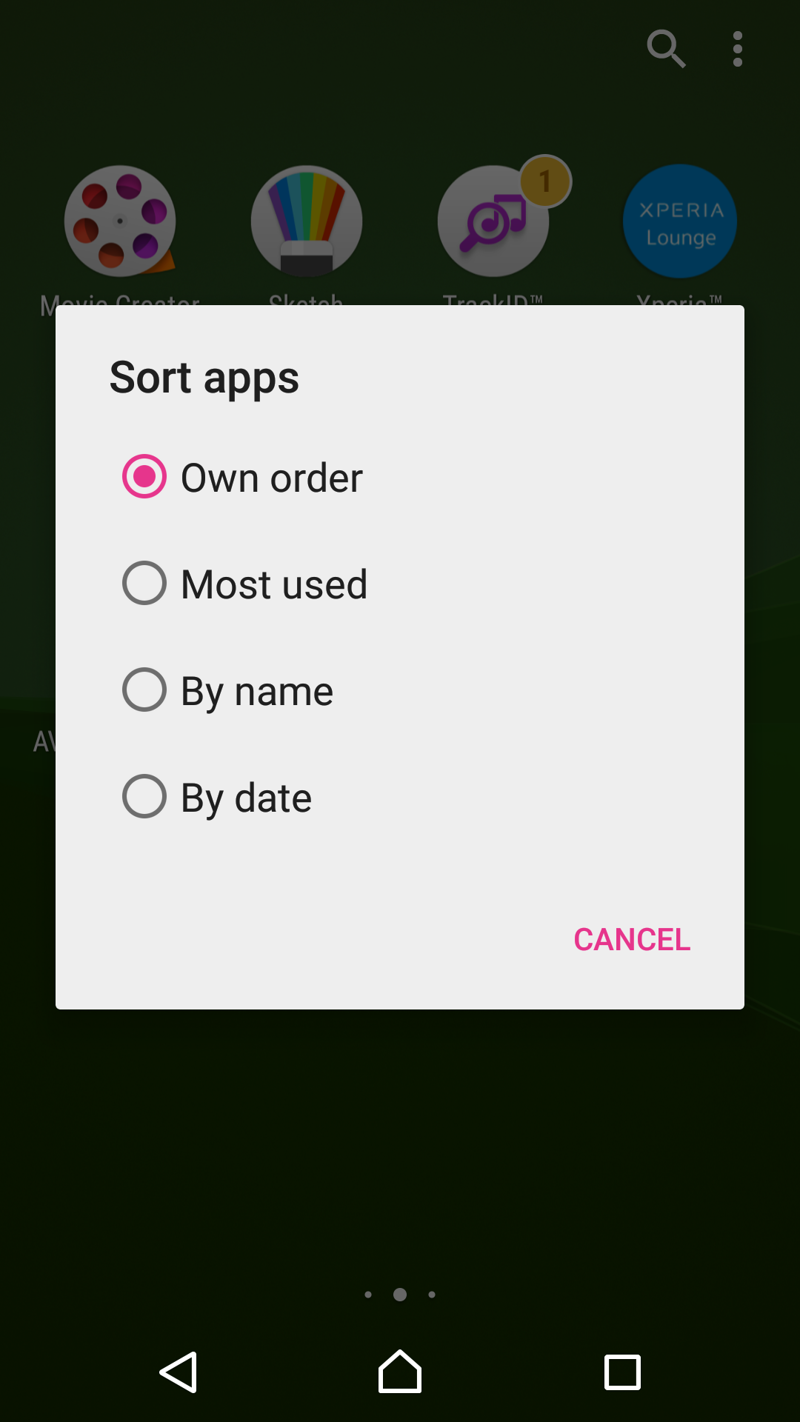 Приложения в меню могут демонстрироваться согласно порядку выбранному пользователем, по популярности, по алфавиту или по дате загрузки. Пользователь может изменить размер икон, запустить (икона лупы) поиск приложения, создавать папки.