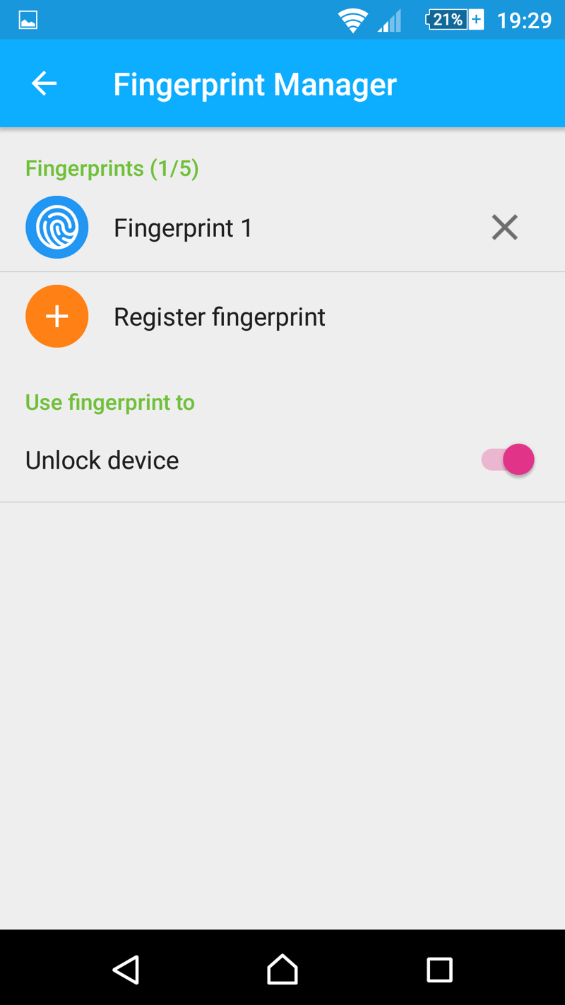 Sony применяя биометрическую защиту решился на превосходную технологию — интегрированный сканер папиллярных узоров с включателем мобильника, он же снимает блокаду экрана. Что характерно, производитель отказался от характерной круглой кнопки, чтобы получить соответствующую поверхность для сканирования. Такое решение на много лучше чем поиск дополнительного места для сканера. Технология срабатывала безошибочно почти каждый раз, проблема появлялась только если палец был грязный, мокрый или с кремом. На сегодняшний день отпечаток пальца снимает блокаду с устройства, однако вместе с внедрением системы Android Marshmallow перечень возможностей сканера может увеличится, напр. его используют для подтверждения платежа в маркете Google.
