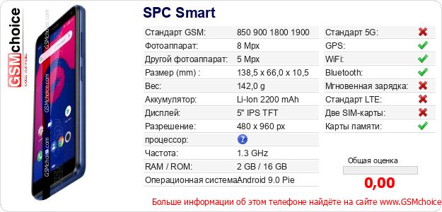 Данные о телефоне SPC Smart на Вашем сайте