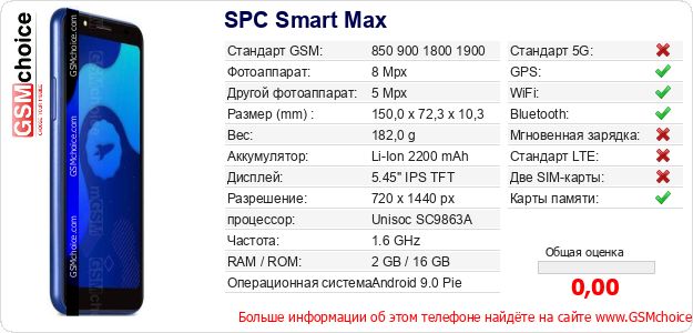 Данные о телефоне SPC Smart Max на Вашем сайте