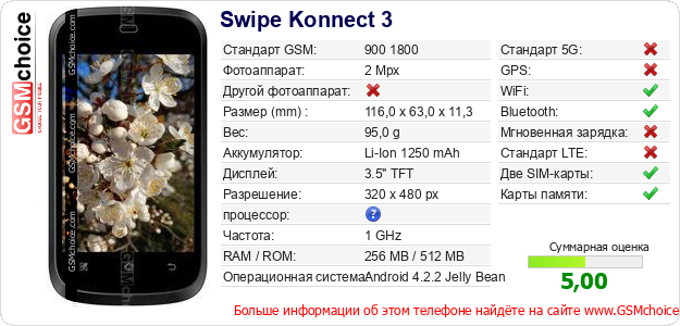 Данные о телефоне Swipe Konnect 3 на Вашем сайте