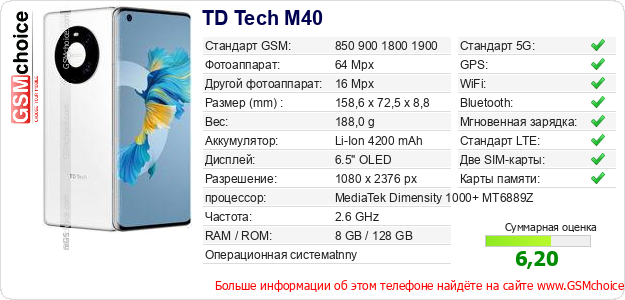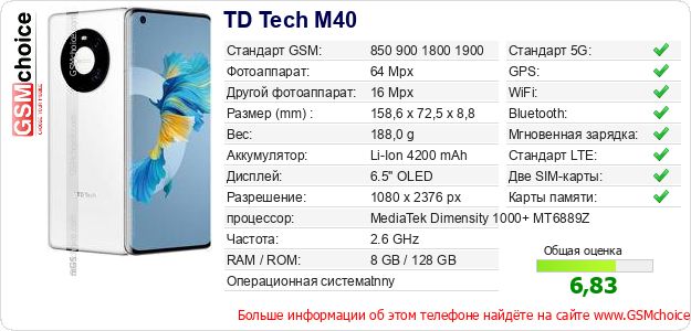 Данные о телефоне TD Tech M40 на Вашем сайте