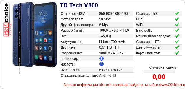 Данные о телефоне TD Tech V800 на Вашем сайте