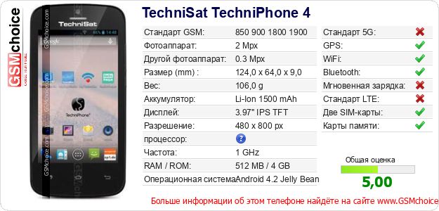 Данные о телефоне TechniSat TechniPhone 4 на Вашем сайте