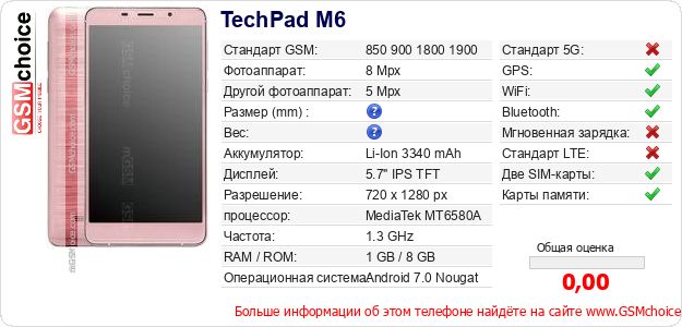 Данные о телефоне TechPad M6 на Вашем сайте