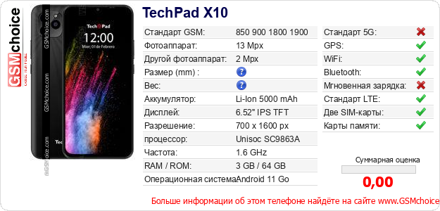 У Тебя есть свой сайт? Хочешь где-то разместить информацию о базовых данных мобильника TechPad X10 ? Это запросто устроить. Достаточно скачать картинку или скопировать и разместить на соответствующем сайте нижерасположенный код:Размещение этого кода вызовет появление нижерасположенной картинки: