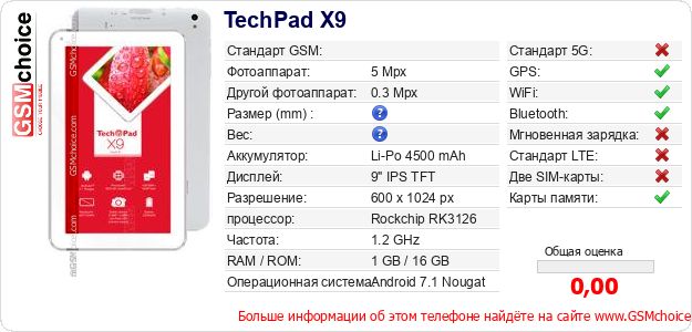 Данные о телефоне TechPad X9 на Вашем сайте