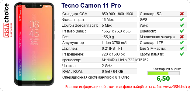 Данные о телефоне Tecno Camon 11 Pro на Вашем сайте