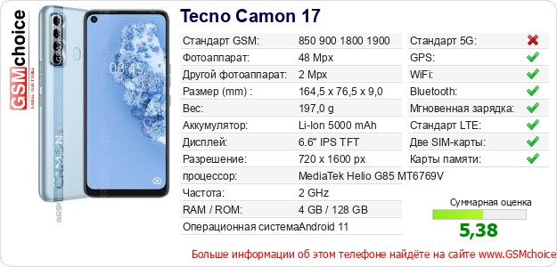 Данные о телефоне Tecno Camon 17 на Вашем сайте