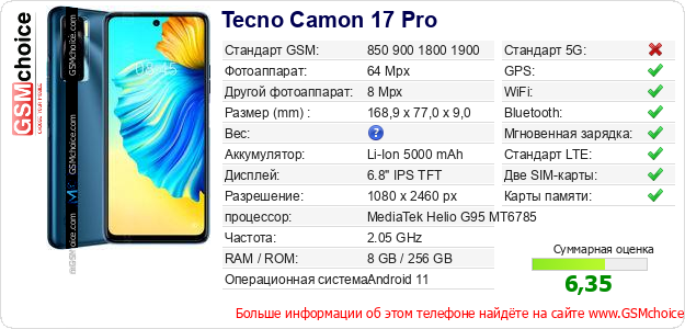 Данные о телефоне Tecno Camon 17 Pro на Вашем сайте