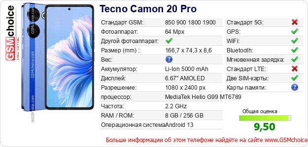 Данные о телефоне Tecno Camon 20 Pro на Вашем сайте