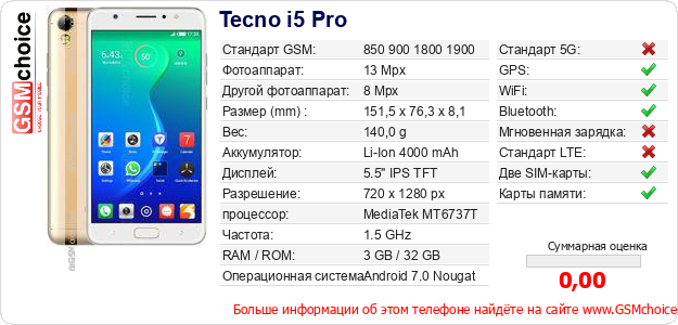 Данные о телефоне Tecno i5 Pro на Вашем сайте