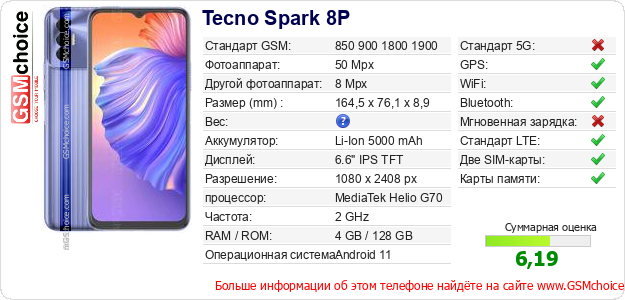 Данные о телефоне Tecno Spark 8P на Вашем сайте