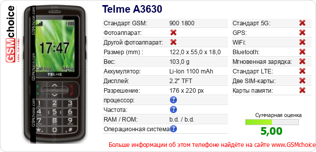 Данные о телефоне Telme A3630 на Вашем сайте