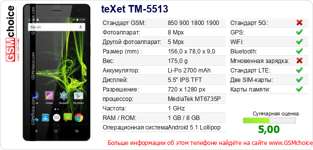 Данные о телефоне teXet TM-5513 на Вашем сайте