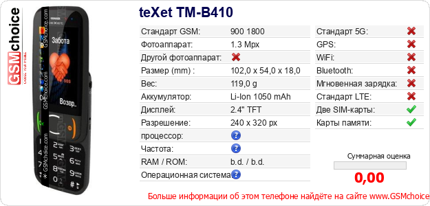 Данные о телефоне teXet TM-B410 на Вашем сайте