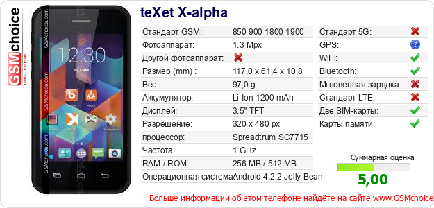 Данные о телефоне teXet X-alpha на Вашем сайте