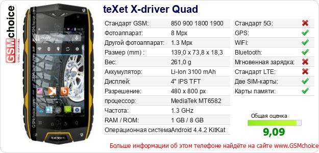 Данные о телефоне teXet X-driver Quad на Вашем сайте
