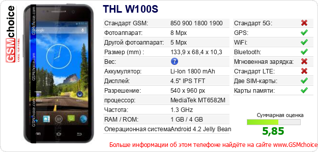 Данные о телефоне THL W100S на Вашем сайте