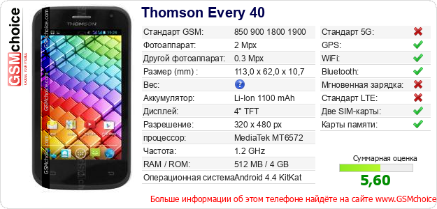 Данные о телефоне Thomson Every 40 на Вашем сайте