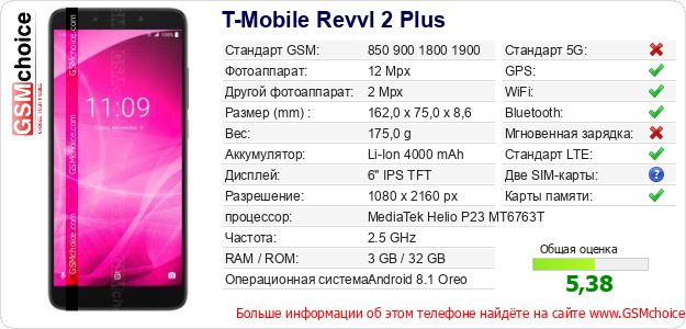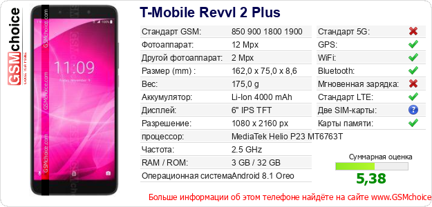 Данные о телефоне T-Mobile Revvl 2 Plus на Вашем сайте